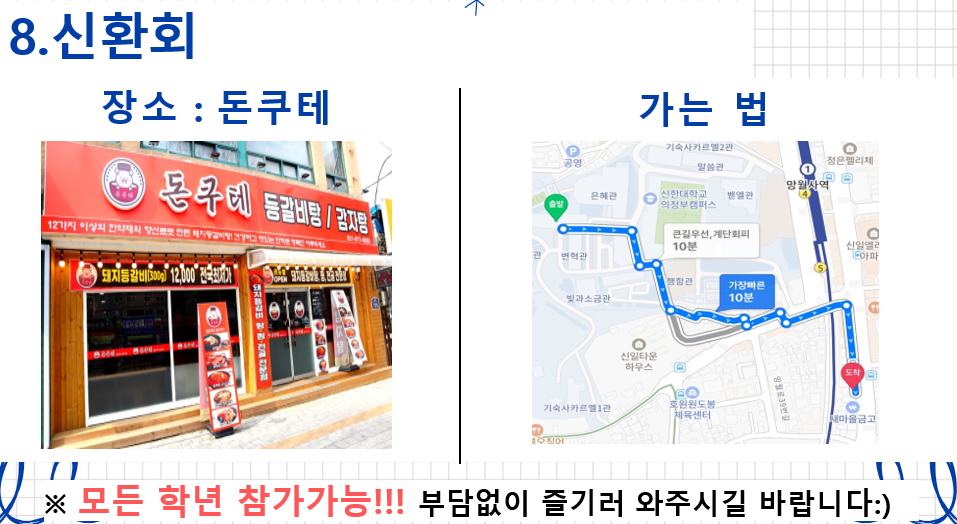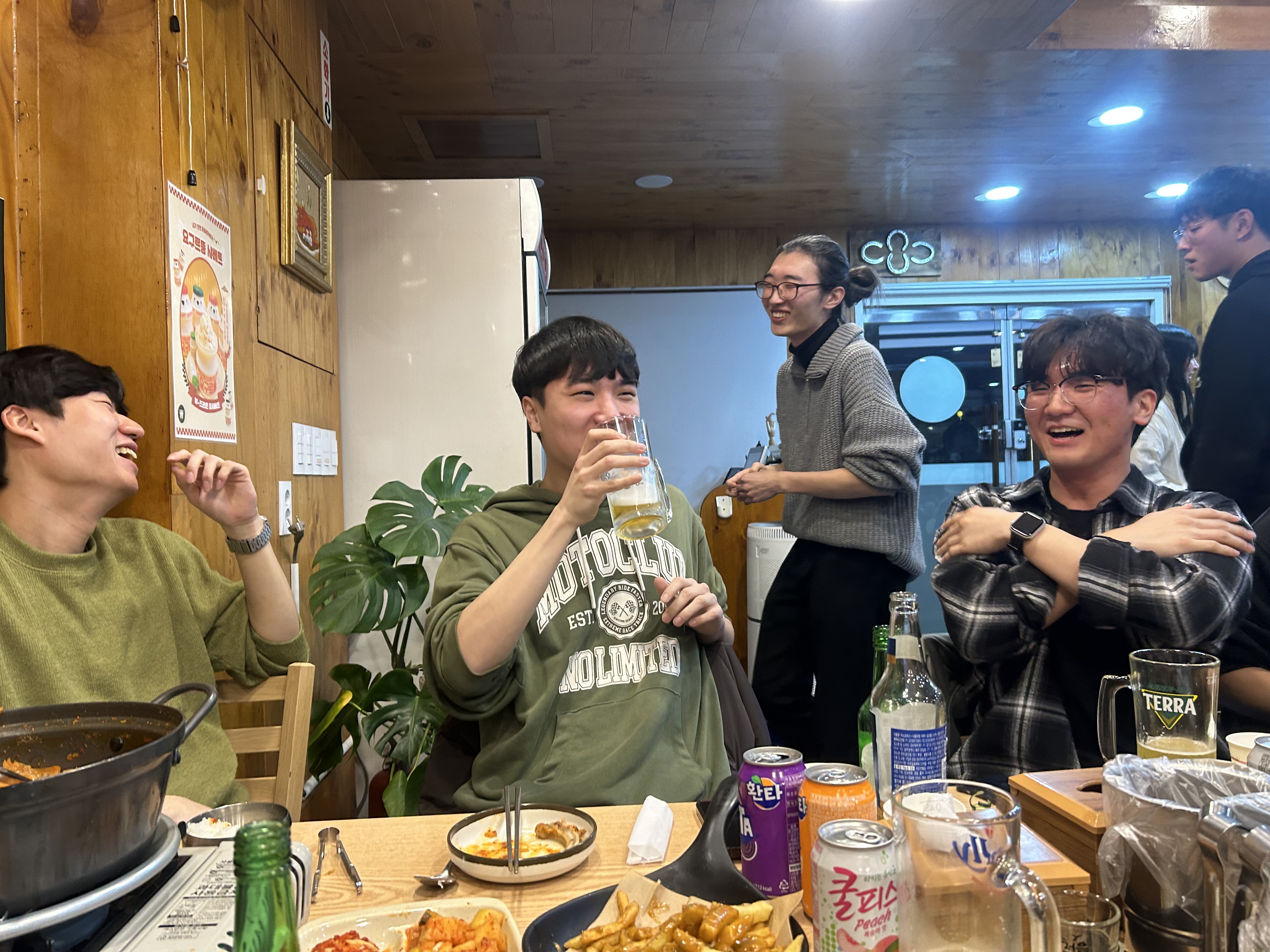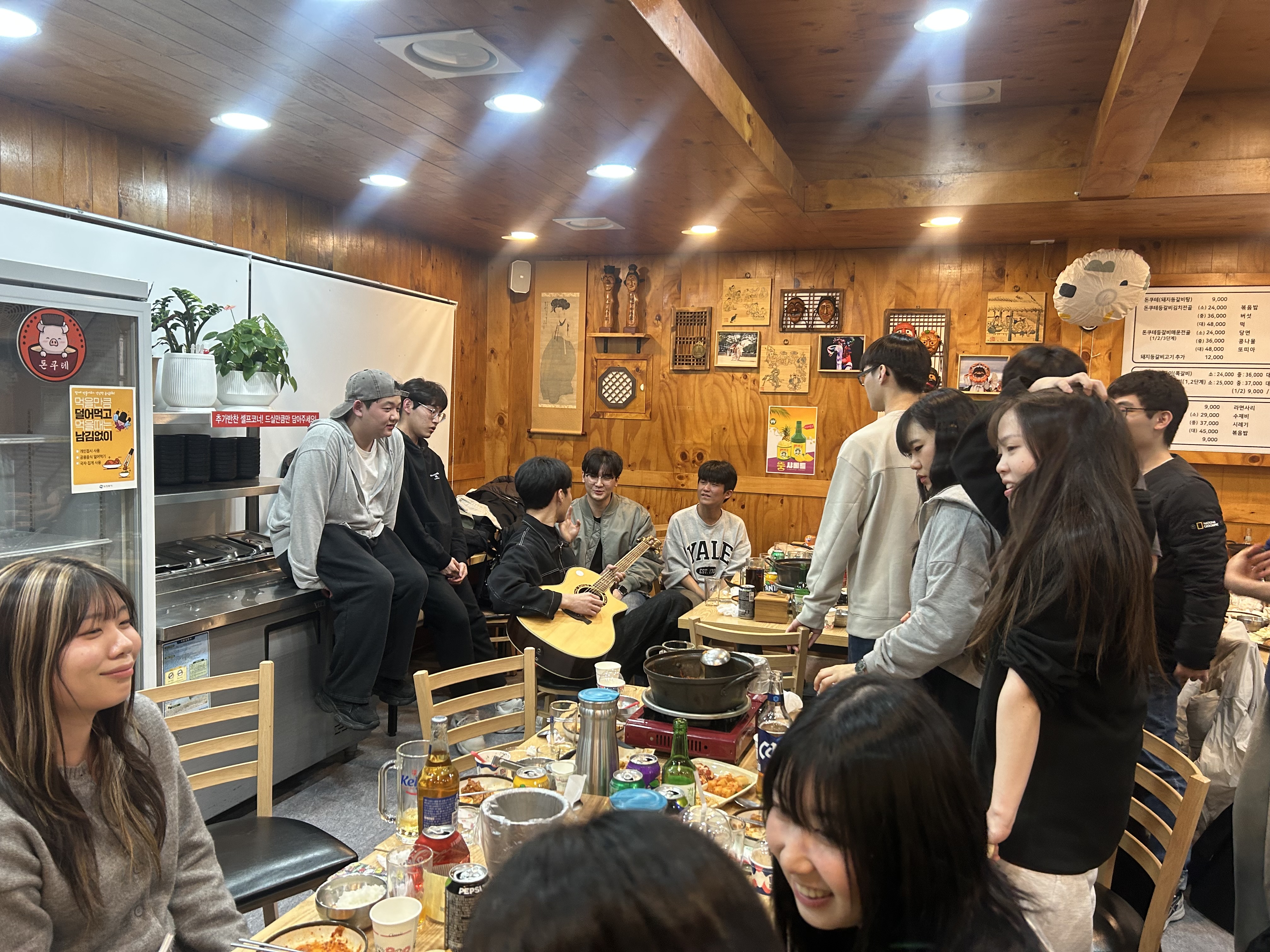 사실 학교 근처 단체 예약이 치열해서 예약 전쟁이었는데요, (조금 늦게 예약한 건 비밀...🤫) 다행히 넓은 자리를 확보해 우리 학우분들과 함께할 수 있었습니다!