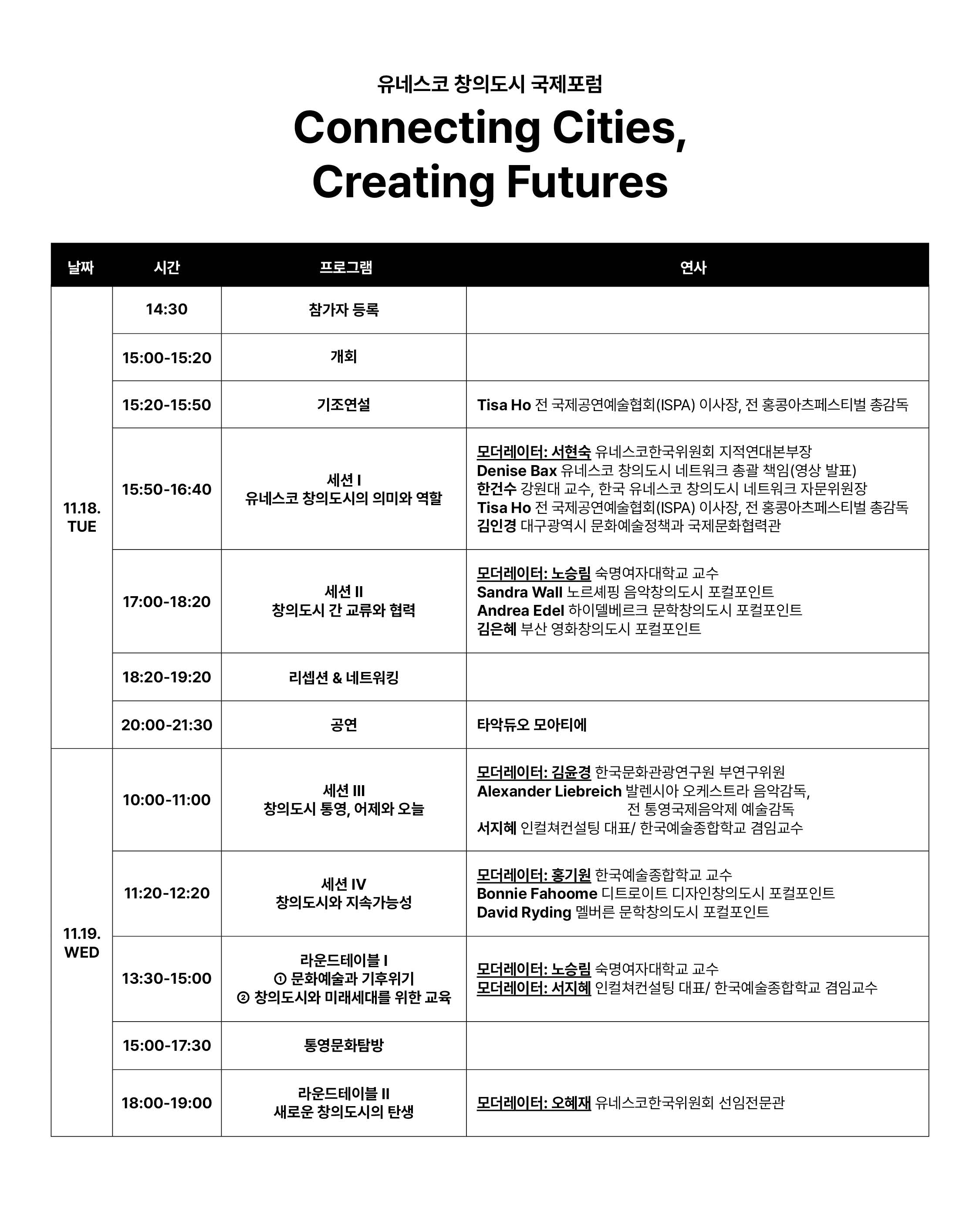 대한민국 문화도시「유네스코 창의도시 국제포럼」참여 안내