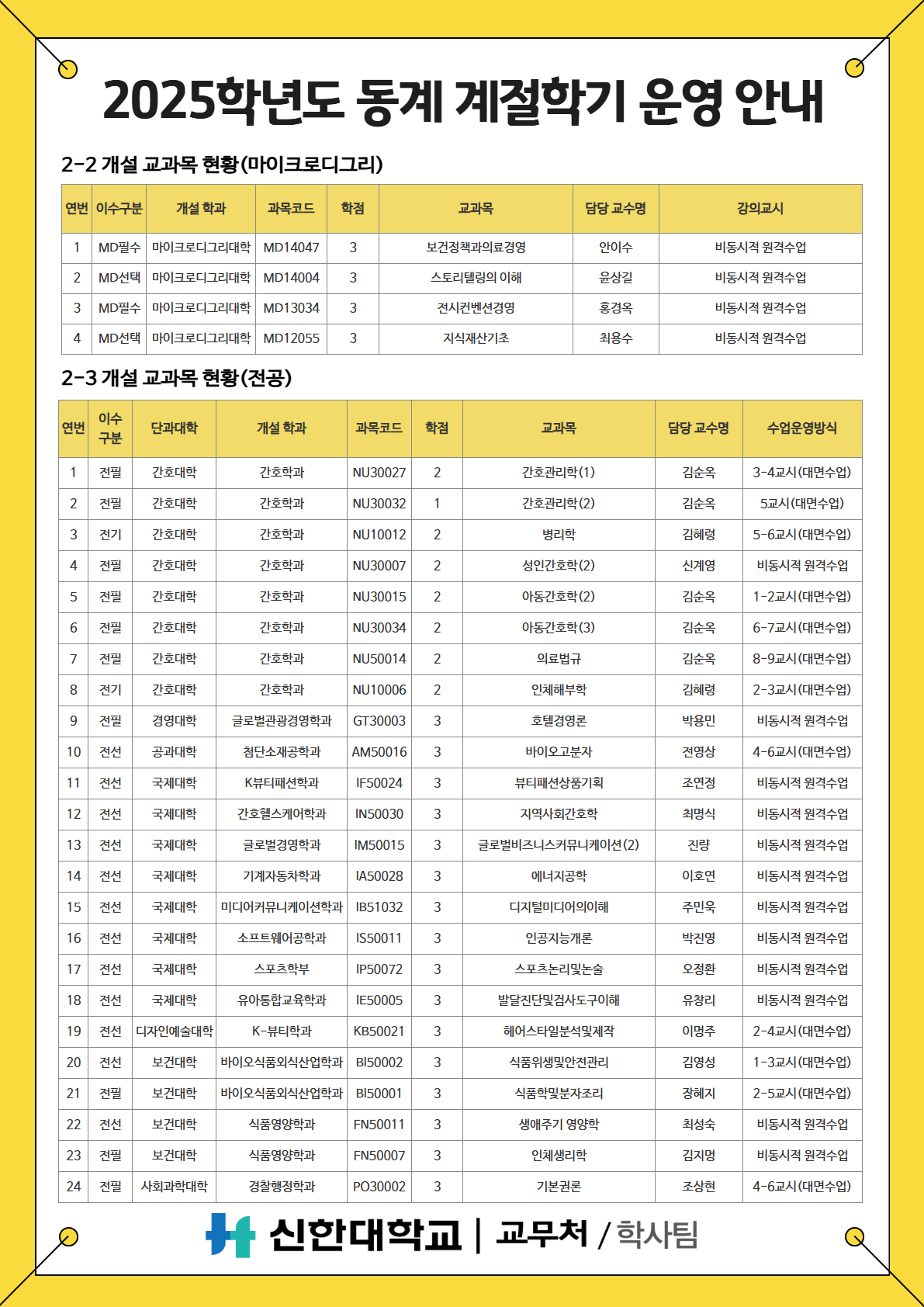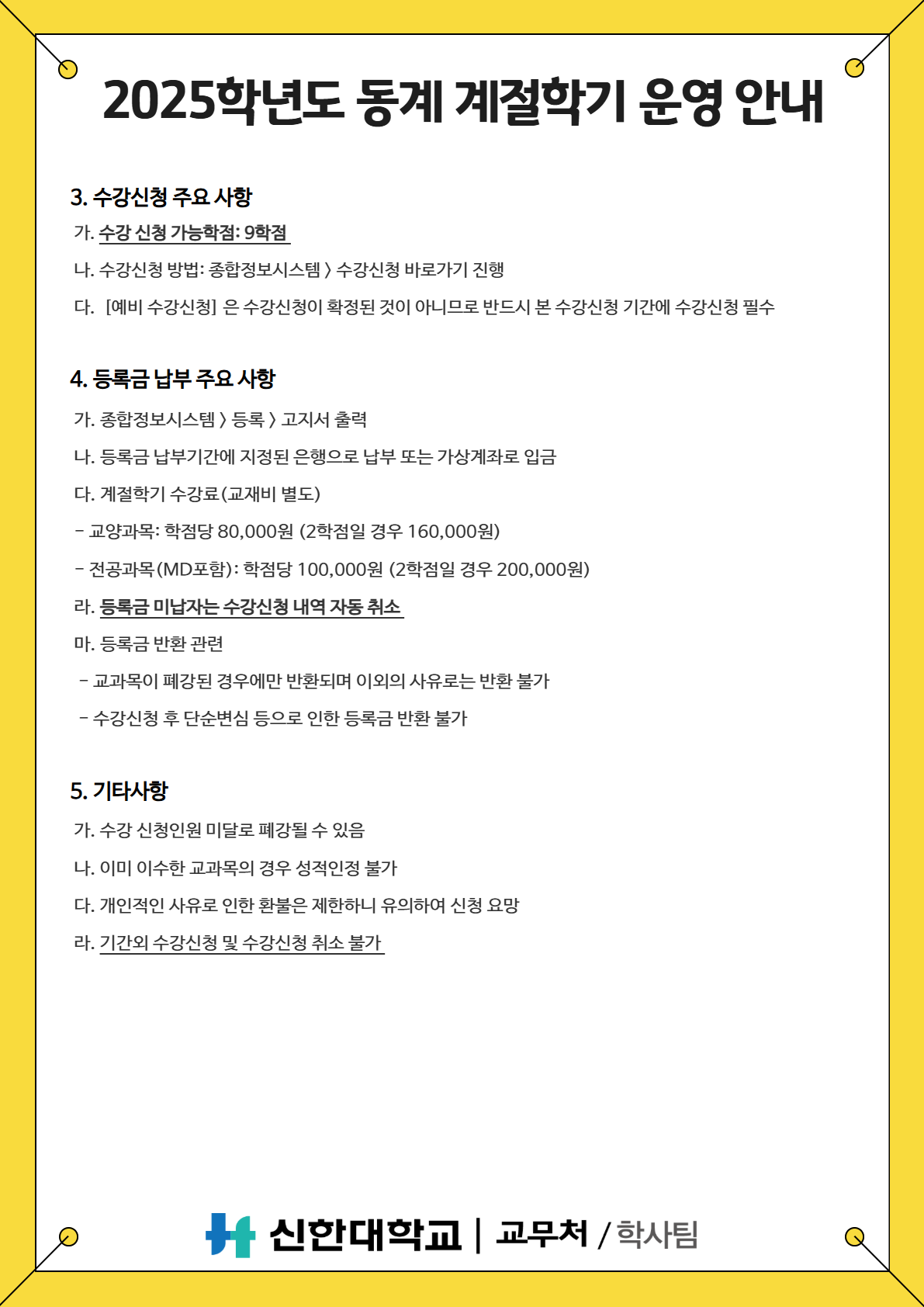 [학사팀/수업] 2025학년도 동계 계절학기 운영 안내