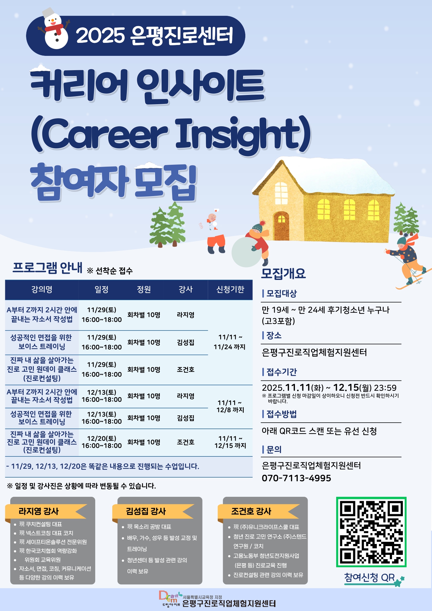 2025년 은평구진로직업체험지원센터 후기 청소년 진로교육 '커리어 인사이트(Career Insight)' 참여자 모집 홍보