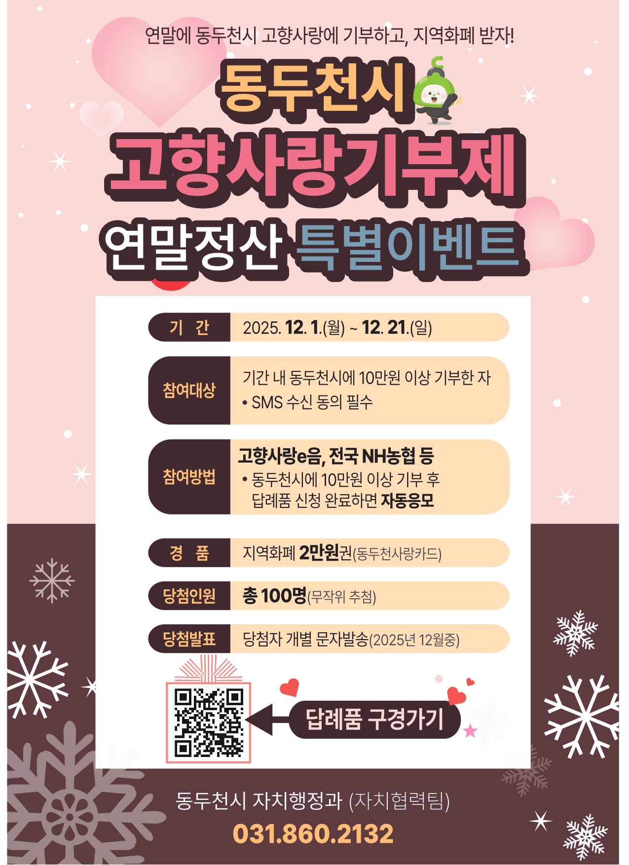 ‘동두천시 고향사랑기부제 연말정산 특별이벤트’참여 및 홍보 안내