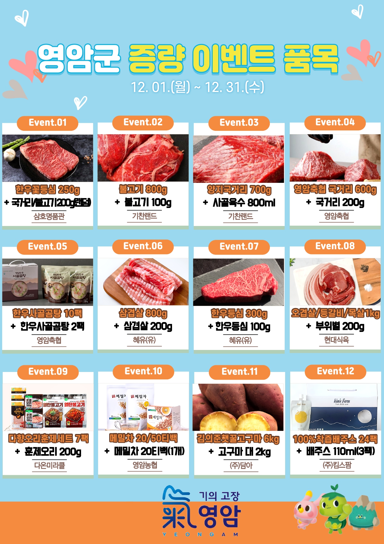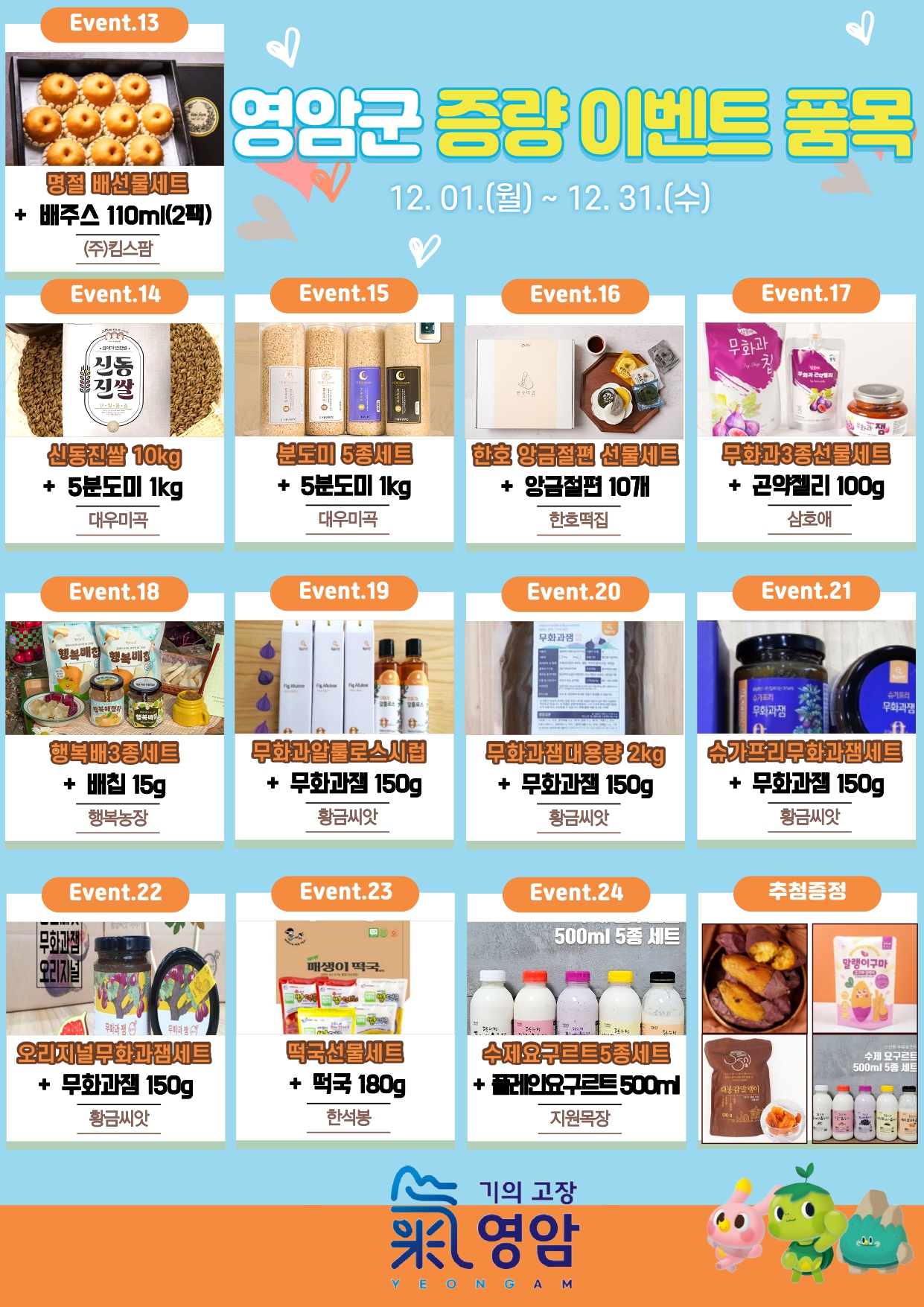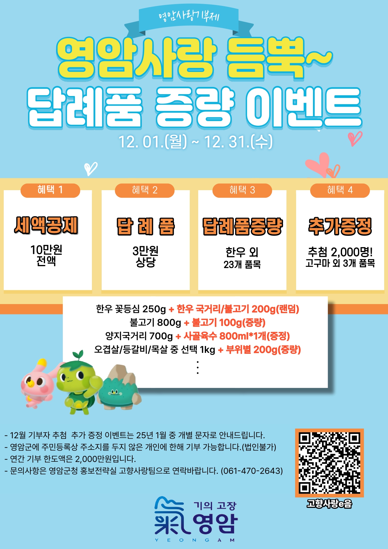 “영암사랑 듬뿍~ 12월 답례품 증량 이벤트!” 영암군 고향사랑기부제 이벤트 안내