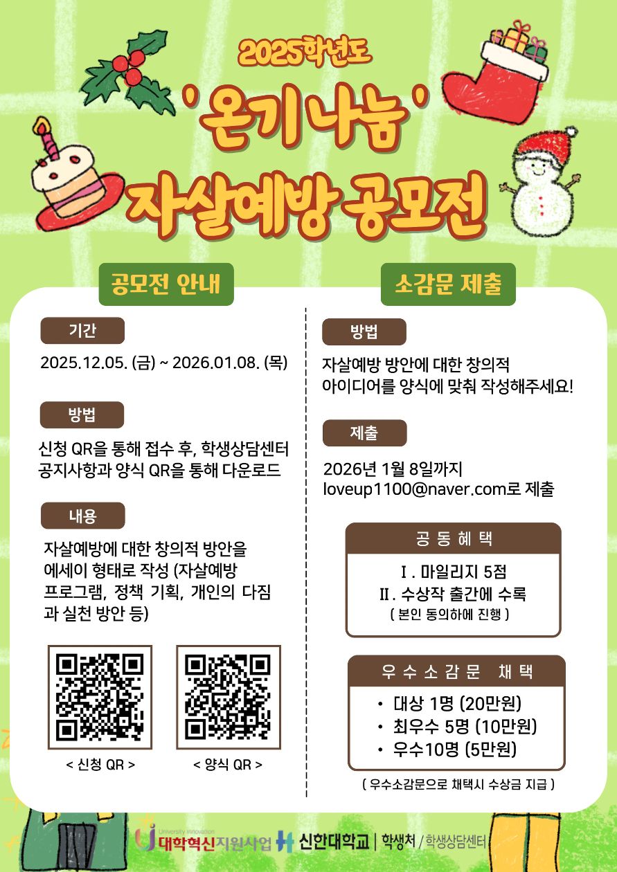 2025학년도 학생상담센터 『온기 나눔-자살예방 공모전』