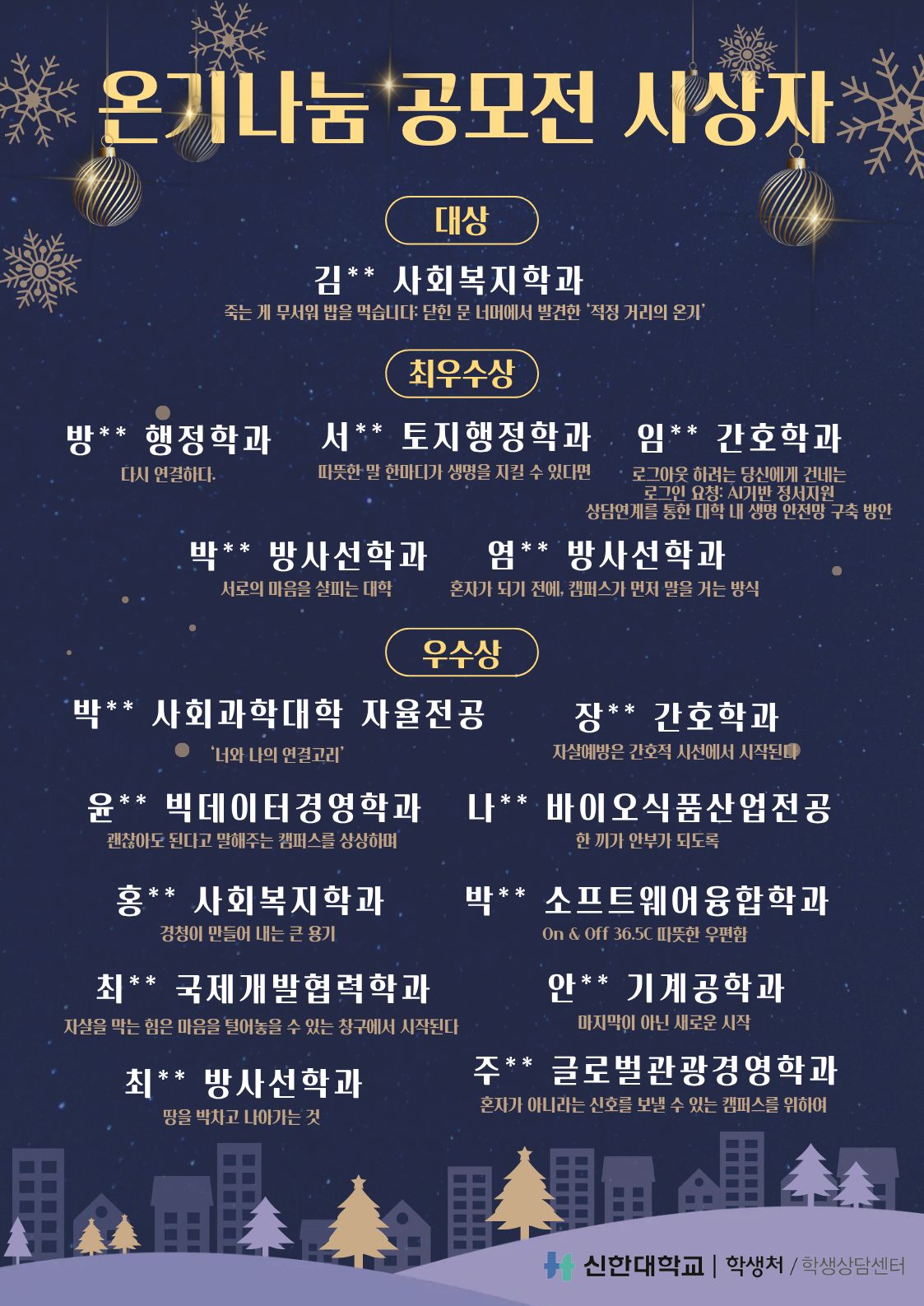 [학생상담센터] 2025학년도 온기 나눔-자살예방 공모전 수상자 발표