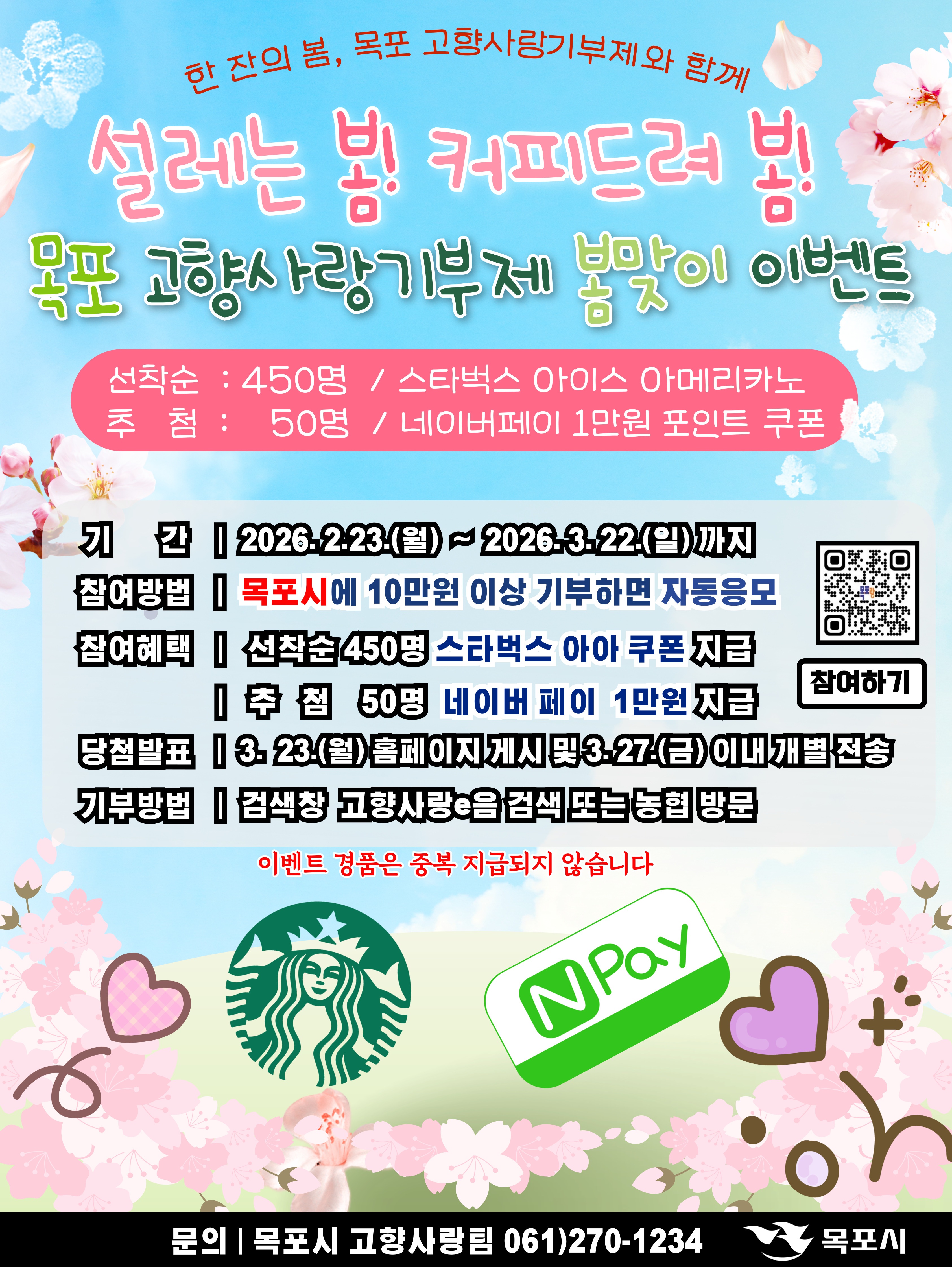 설레는 봄! 커피드려 봄! 목포 고향사랑기부제 봄맞이 이벤트
