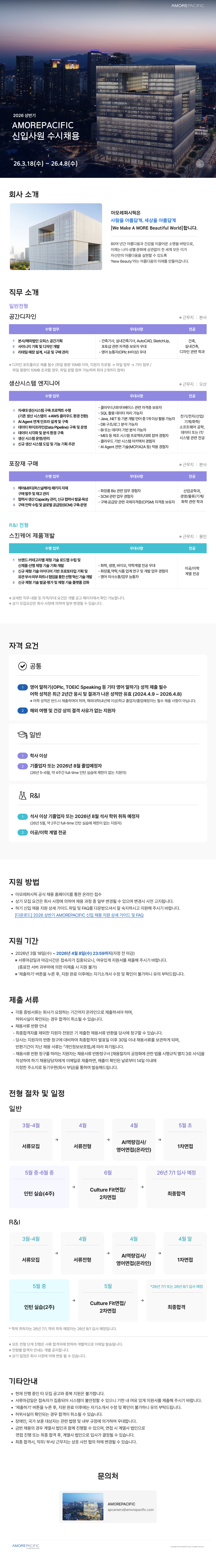 [다운로드]2026상반기 AMOREPACIFIC 신입 채용 지원 상세 가이드 및 FAQ