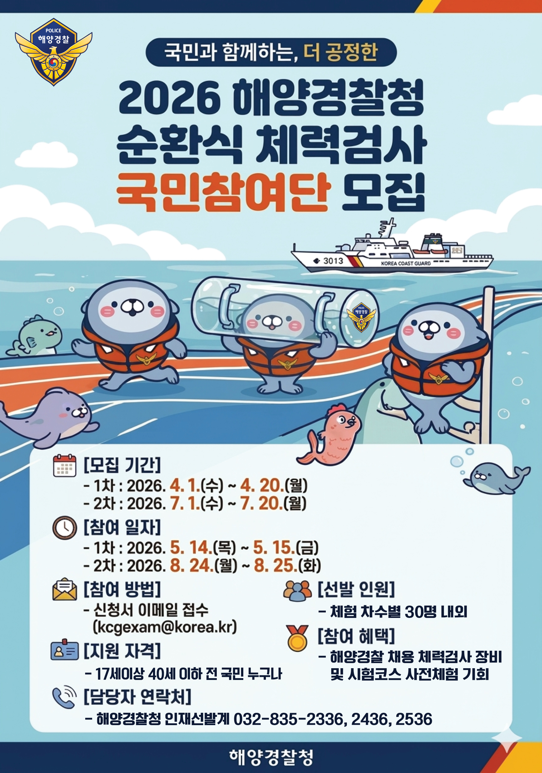 해양경찰공무원 채용 순환식 체력검사 국민참여단 모집